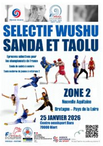 Les sélectifs Sanda/ Taolu inter régions, zone 2 : Nouvelle Aquitaine/Bretagne Pays de Loire en vue des championnats de France des 14 et 15 février 2026.