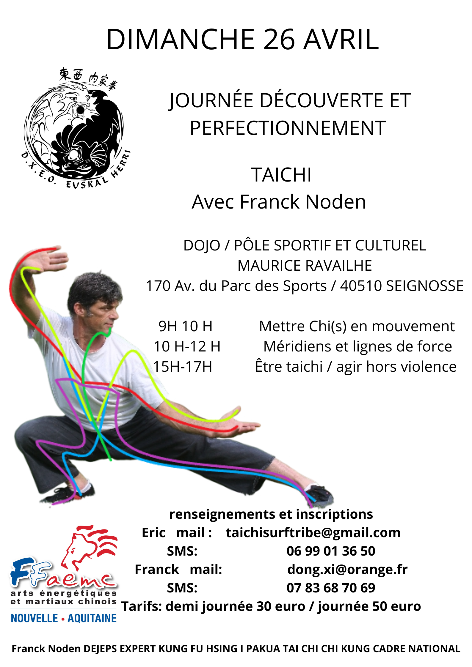 Renseignements et inscriptions : Franck Noden 07 83 68 70 69 dong.xi@orange.fr