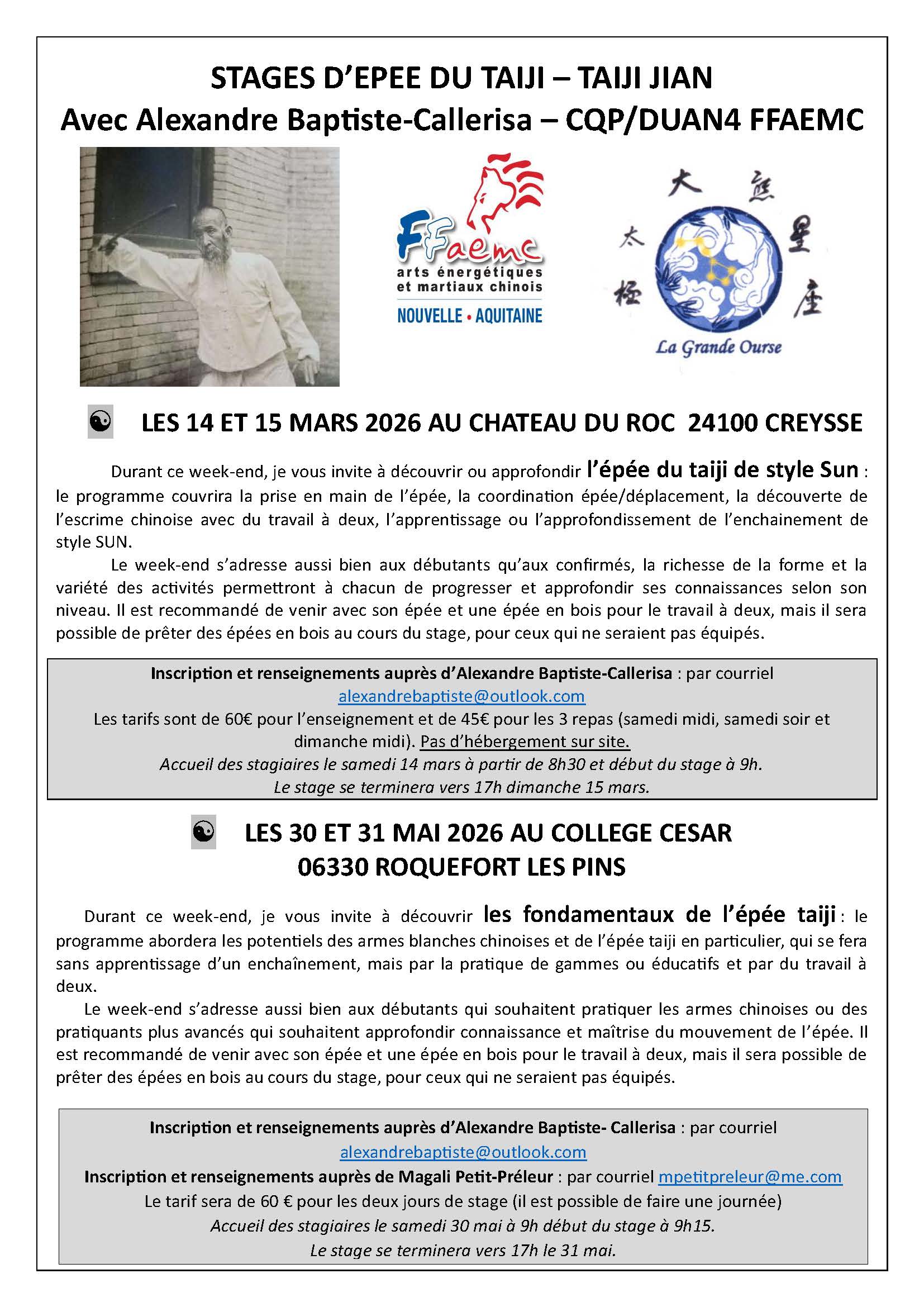 Programme des stages : stage épée du taiji 2026 (1)
