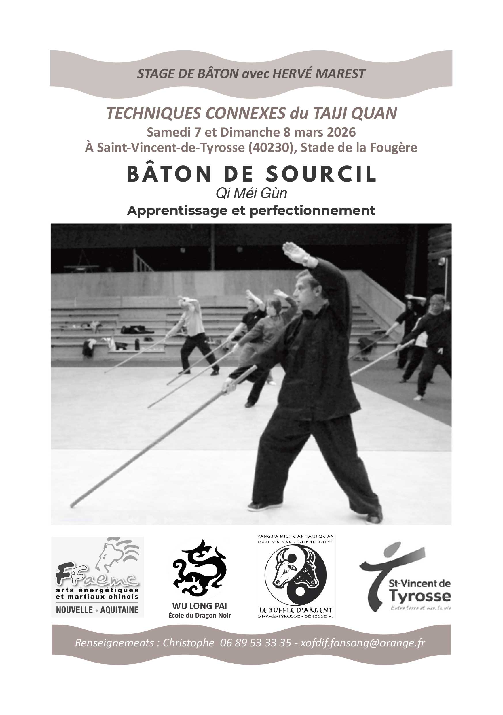 Programme & inscription : Stage Bâton du Taiji-mars 2026 Tyrosse-flyer