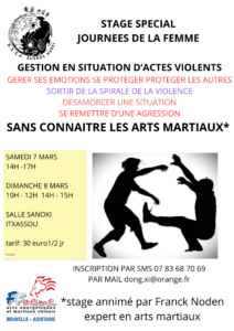 STAGE SPECIAL JOURNÉE DE LA FEMME – 7 ET 8 MARS 2026 2026
