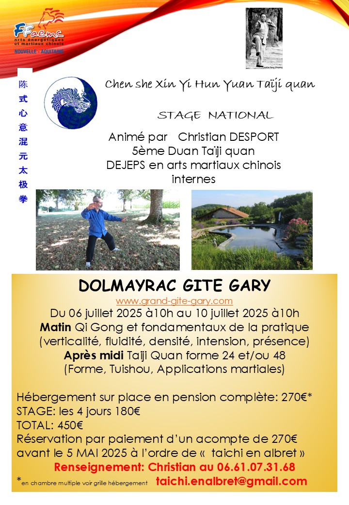 Stage TAI-CHI CHUAN ÉCOLE CHEN – 6/07 au 10/07/26